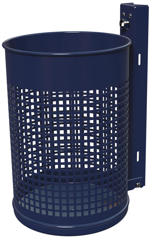 ∙ Gefertigt aus Stahlblech ∙ Gelochter Korpus ∙ Geeignet zur Wand- und Pfostenmontage ∙ Volumen ca. 20 oder 50 l ∙ Behälter-Ø 265 oder 370 mm, Höhe 410 oder 520 mm ∙ Gewicht inkl. Befestigungsschiene ca. 4,0 oder 5,5 kg ∙ Erhältlich in feuerverzinkt oder feuerverzinkt und zusätzlich pulverbeschichtet ∙ Lieferumfang: Abfallbehälter, Befestigungsschiene und Schlüssel (Befestigungsmaterial siehe Zubehör)