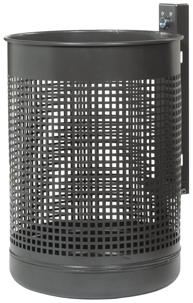 ∙ Gefertigt aus Stahlblech ∙ Gelochter Korpus ∙ Geeignet zur Wand- und Pfostenmontage ∙ Volumen ca. 20 oder 50 l ∙ Behälter-Ø 265 oder 370 mm, Höhe 410 oder 520 mm ∙ Gewicht inkl. Befestigungsschiene ca. 4,0 oder 5,5 kg ∙ Erhältlich in feuerverzinkt oder feuerverzinkt und zusätzlich pulverbeschichtet ∙ Lieferumfang: Abfallbehälter, Befestigungsschiene und Schlüssel (Befestigungsmaterial siehe Zubehör)