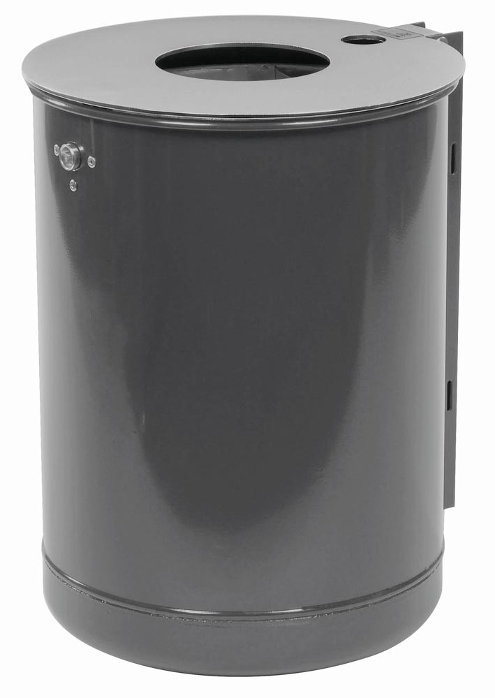Abfallbehälter mit Ascher 50 l, m. Edelst.-Deckelscheibe DxH 380x515 mm, angeschw. U-Profilschiene zum Montage, Einsatzbehälter, RAL 7016