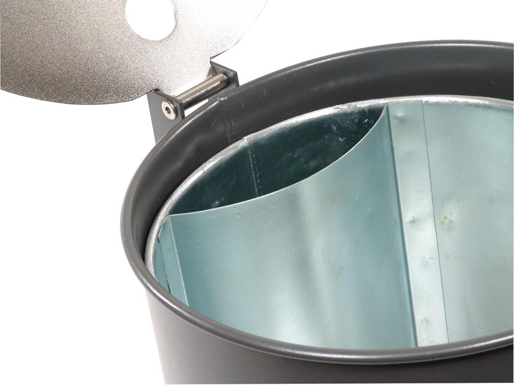 Abfallbehälter mit Ascher 50 l, m. Edelst.-Deckelscheibe DxH 380x515 mm, angeschw. U-Profilschiene zum Montage, Einsatzbehälter, RAL 5013 E871627