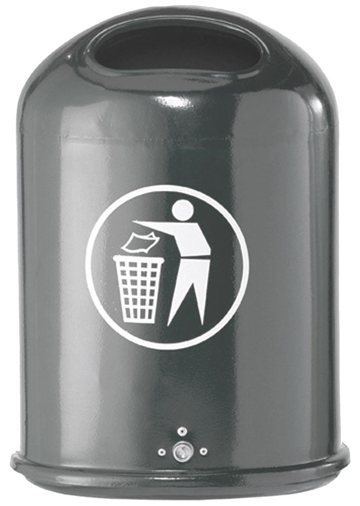 Abfallbehälter oval, Vol. 45 l, aus Stahlblech, BxTxH 425x330x590 mm, ohne Federklappe, RAL 6005, inkl. Aufkleber E846121
