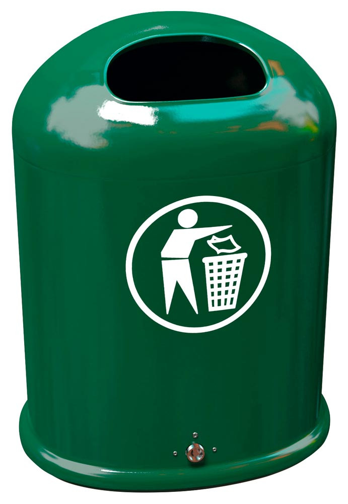 Abfallbehälter oval, Vol. 45 l, aus Stahlblech, BxTxH 425x330x590 mm, ohne Federklappe, RAL 6005, inkl. Aufkleber E846121