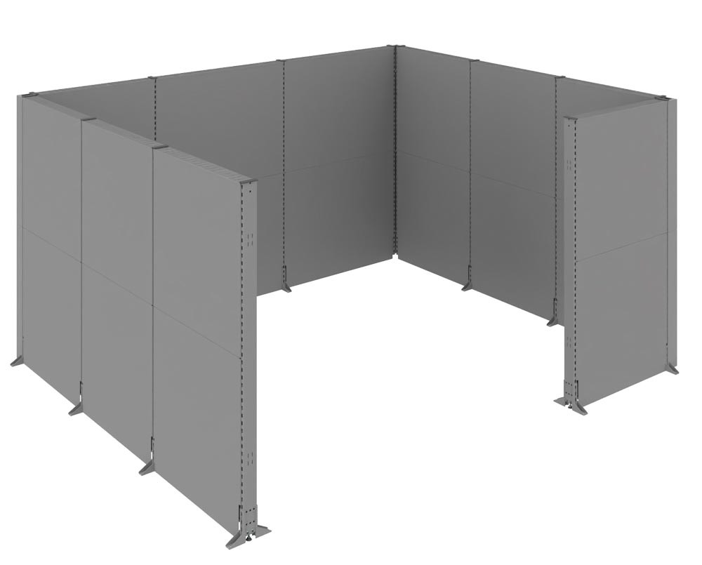 Akustik-Stellwand, BxTxH 3730x3230x2500 mm, ohne Tür, ohne Dach, RAL 7037 staubgrau
