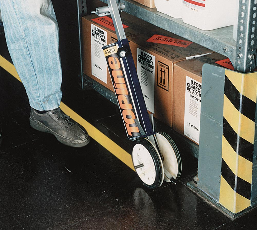 Bodenmarkierer-Einsteiger-Set, bestehend aus Markiergerät für 1 Kartusche, 2 Kartuschen Bodenmarkierfarbe gelb, 1 Schlagschnur und Kreide E840938