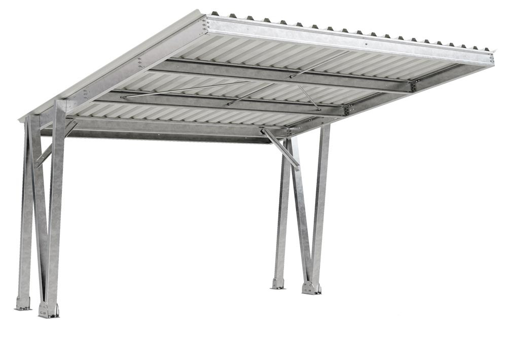 ∙ Idealer Schutz für große Parkflächen ∙ Schnelle Montage dank vorgefertigtem Bausatz ∙ Kann flexibel an die Anzahl der benötigten Stellplätze angepasst werden ∙ Stabile Pultdachkonstruktion mit langlebiger und pflegleichter Trapezblecheindeckung