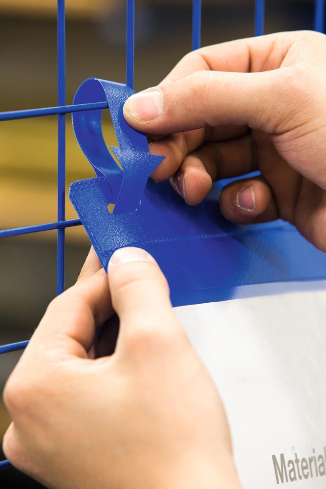 · Mit pfeilförmigen Laschen zur Befestigung an Lager- und Transportboxen · Starker Halt an beweglichen Transportbehältern wie Gitterboxen · Farbige Rückenfolie und transparente Vorderfolie aus strapzierfähigem Polypropylen · Scannertauglich und dokumentenecht · Geeignet für den Außeneinsatz durch Staub- und Regenschutzklappe · Schneller Austausch der Einsteckschilder · Dokumentenwechsel ohne Entfernen der Tasche · VE 50 Stück