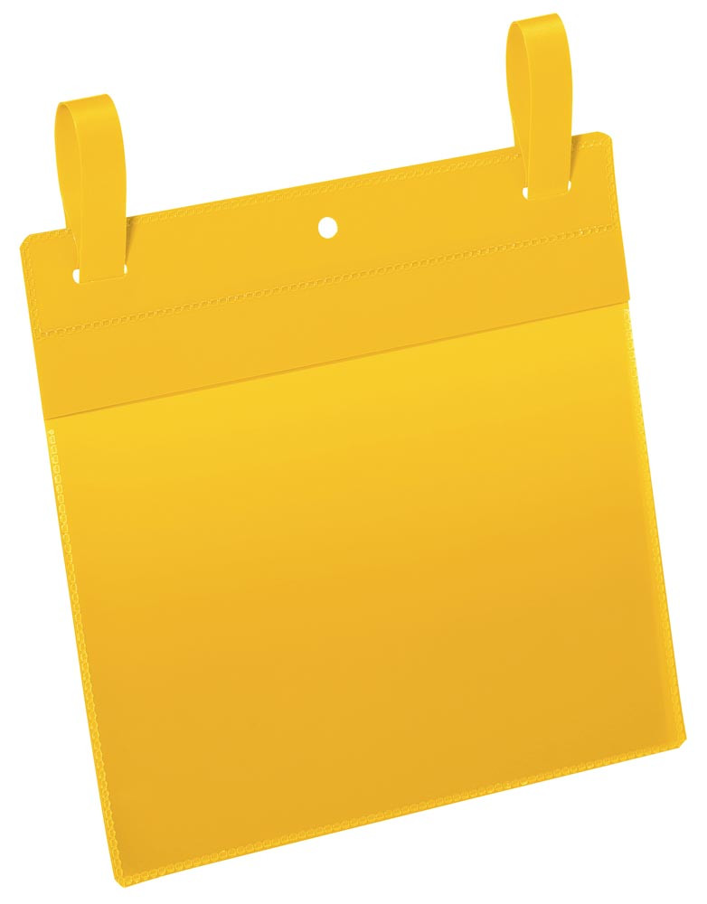 · Mit pfeilförmigen Laschen zur Befestigung an Lager- und Transportboxen · Starker Halt an beweglichen Transportbehältern wie Gitterboxen · Farbige Rückenfolie und transparente Vorderfolie aus strapzierfähigem Polypropylen · Scannertauglich und dokumentenecht · Geeignet für den Außeneinsatz durch Staub- und Regenschutzklappe · Schneller Austausch der Einsteckschilder · Dokumentenwechsel ohne Entfernen der Tasche · VE 50 Stück