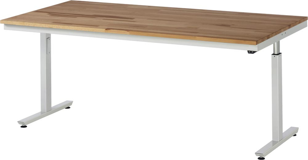Elektrisch höhenverstellbarer Arbeitstisch, Platte Buche 25 mm, BxTxH 2000x1000x720-1120 mm, RAL 7035, Flächenlast 300 kg