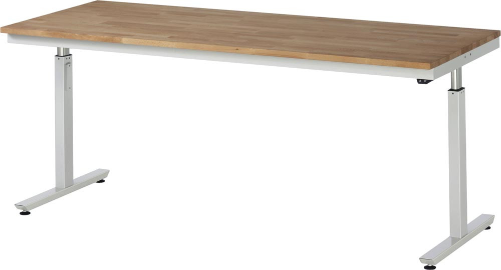 Elektrisch höhenverstellbarer Arbeitstisch, Platte Buche 25 mm, BxTxH 2000x800x720-1120 mm, RAL 7035, Flächenlast 300 kg