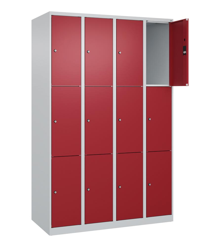 Fächerschrank, BxTxH 1200x500x1850 mm, 4x3 Fächer, Abt.B 300 mm, bodenstehend, Schloss, glatte Türen, Farbwahl