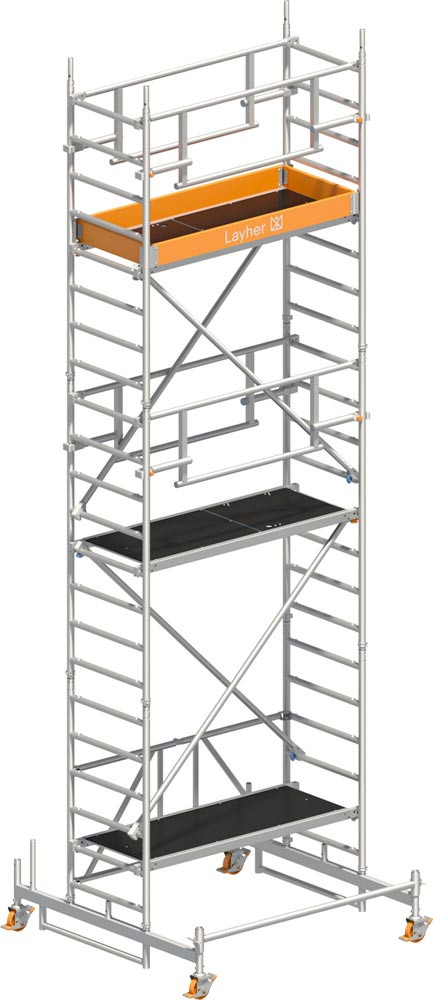 Fahrgerüst P2 mit Sicherheits-Doppelgeländer, Arbeitshöhe 7,76m, Gerüsthöhe 6,99m, Standhöhe 5,76m, Gewicht ohne Balast: 231,7 kg E6489553