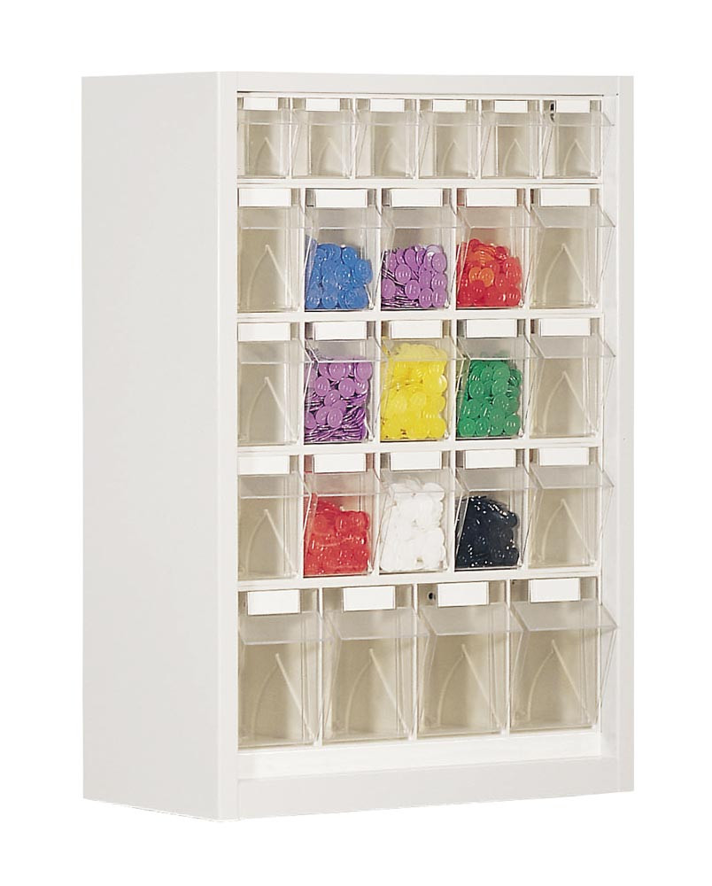 Hängeschrank, BxTxH 665x250x910 mm, 25 Kästen, 6xGr. 6, 15xGr. 5, 4xGr. 4, RAL 7035 lichtgrau