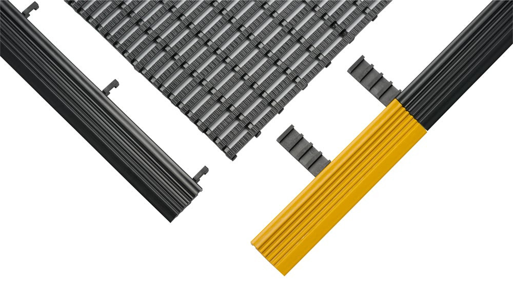 ∙ Aus umweltfreundlichem Recycling-PVC mit rutschhemmender, feingeriffelter Oberfläche (Bewertungsgruppe R10/V10 nach DIN EN 16165), Mattenhöhe 12,5 mm ∙ Beständig gegen Öl, Benzin und alle üblichen Chemikalien ∙ Kantenprofile erleichtern das Befahren mit Transportwagen und verringern die Stolpergefahr