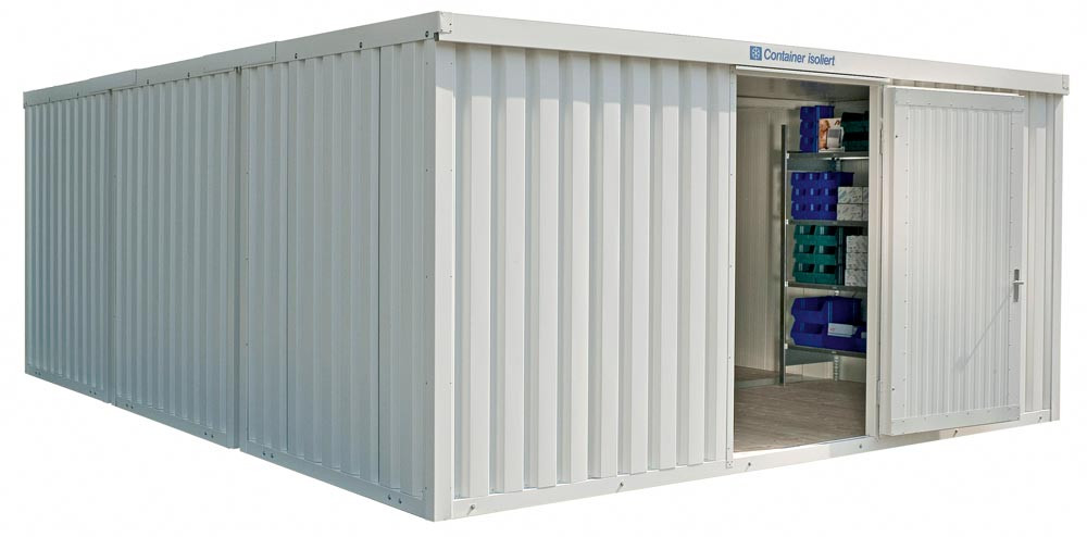Isolierter Lagercontainer, 3 Module, montiert, mit Isolierfußboden, RAL 9002 grauweiß, BxTxH 3030x6525x2480 mm