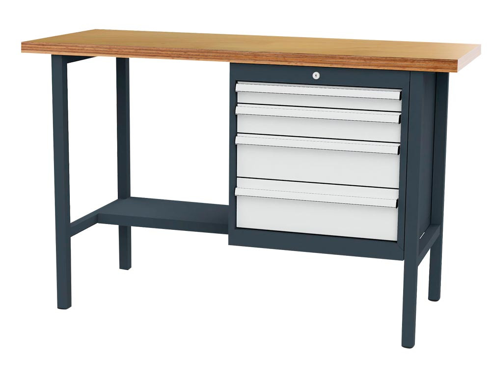 Kastenwerkb., Pl. Multiplex 40 mm, 4 Schubl.1x75, 1x100, 1x150, 1x175 mm, 1 Fachboden, BxTxH 1500x600x960 mm, 7016/7035