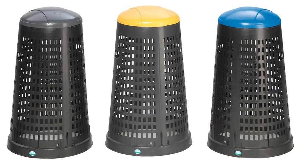 · Hergestellt aus recyclebarem Polypropylen · Ideal für 120 Liter Müllsäcke · Inklusive Klemmring und Deckel · Stationäre Ausführung · Korbständer in Farbe schwarz