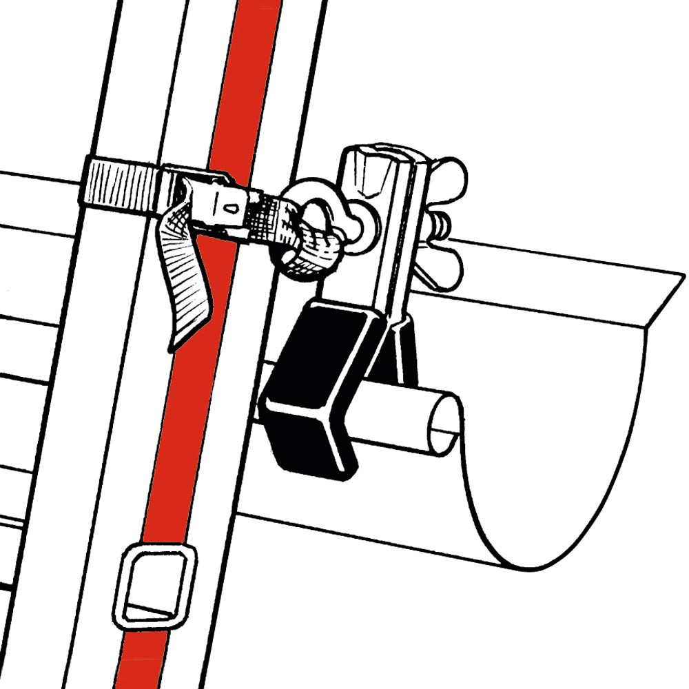 ∙ Für Dachrinnen nach DIN 18461 ∙ Zur absolut sicheren Fixierung von Leitern an Dachrinnen ∙ Halteklammer mit Kunststoffummantelung zum Schutz der Dachrinnen vor Kratzern und Dellen ∙ Set bestehend aus 2 Haltern inkl. Befestigungsmaterial · Selbstmontage ohne Werkzeug