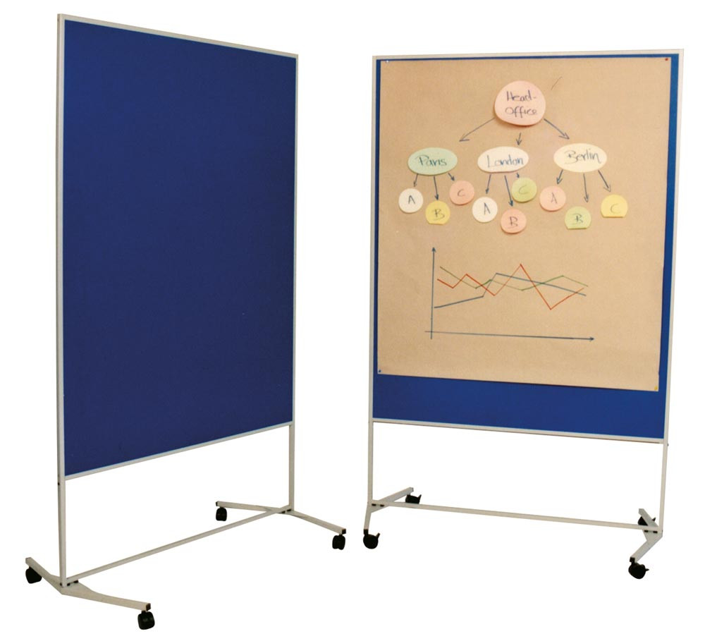 Moderationswand Economy, Stoffbezug blau, Moderationsfläche BxH 1200x1500 mm, Gesamthöhe 1960 mm