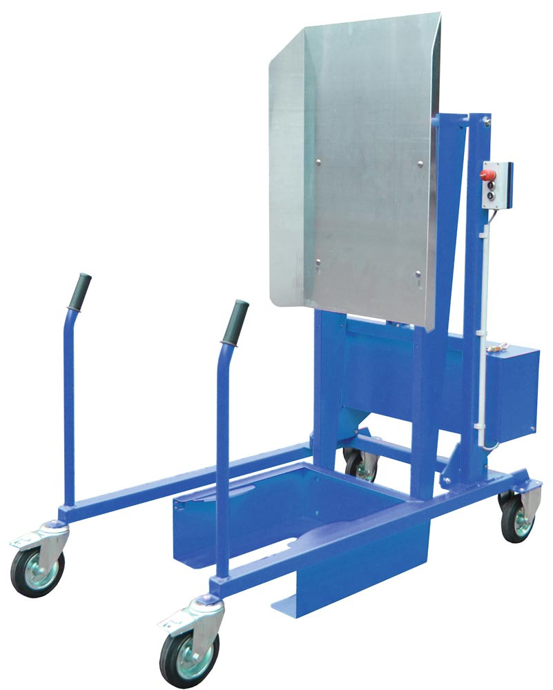 Mülltonnen-Kippstation, elektrohydraulisch, 12 V, ohne Ladegerät, LxBxH 1570x880x1720 mm, RAL 5012 lichtblau