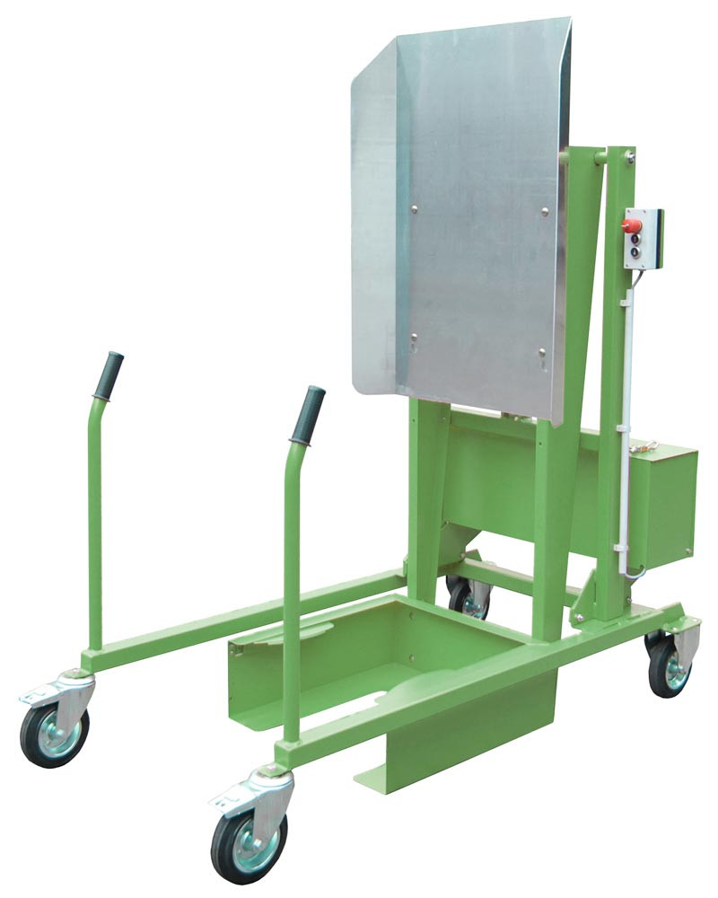 · Zur Entleerung und Reinigung von 120- und 240 Liter Mülltonnen · Kippwinkel bis 135° · Ausschütthöhe ca. 1480 mm · 2 Lenk- und 2 Bockrollen aus Vollgummi, Ø 180 mm, Lenkrollen mit Feststeller, Bauhöhe 225 mm · Traglast 110 kg