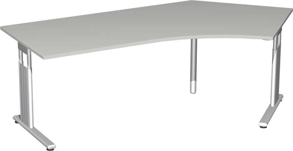 PC-Schreibtisch, BxTxH 1800x1000x680-820 mm, links 425 mm, höhenverstellbar, Platte lichtgrau, C-Fuß-Gestell silber E1979365