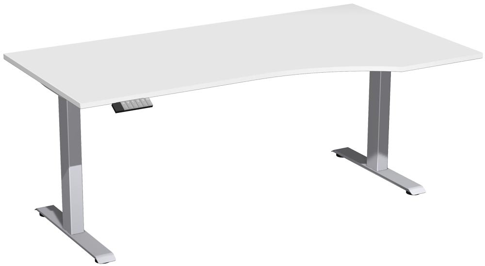 PC-Schreibtisch, elektr. höhenverstellbar, BxTxH 1800x800/1000x630-1280 mm, links 425 mm, Melamin-Platte 25 mm, weiß/silber E6488411