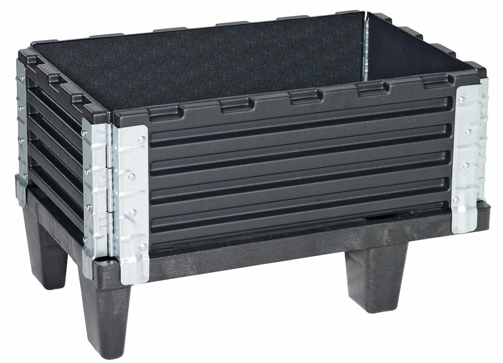 ∙ Aufsatzrahmen für Euro- und Industriepaletten ∙ Aus ABS mit verzinkten Scharnieren ∙ Diagonal klappbar ∙ Rahmenstärke 20 mm ∙ Bei Nichtgebrauch platzsparend zusammenfaltbar ∙ Farbe schwarz ∙ VE 2 Stück