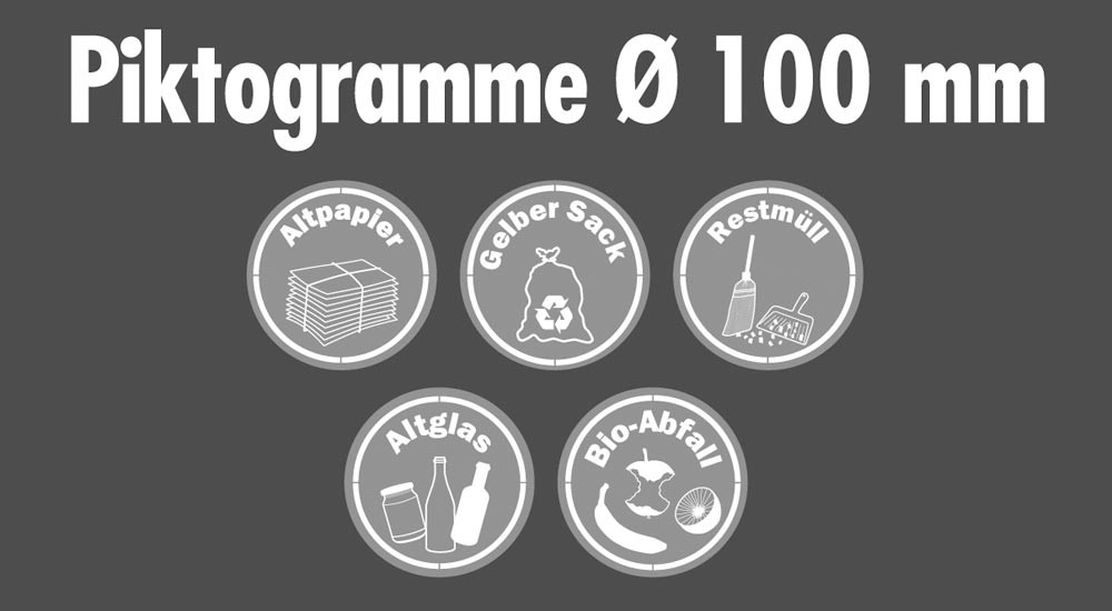 Piktogramme, Durchm. 100 mm, selbstklebend, wasserfest, transparent, Aufdruck weiß, Set mit 5 Stück E815595