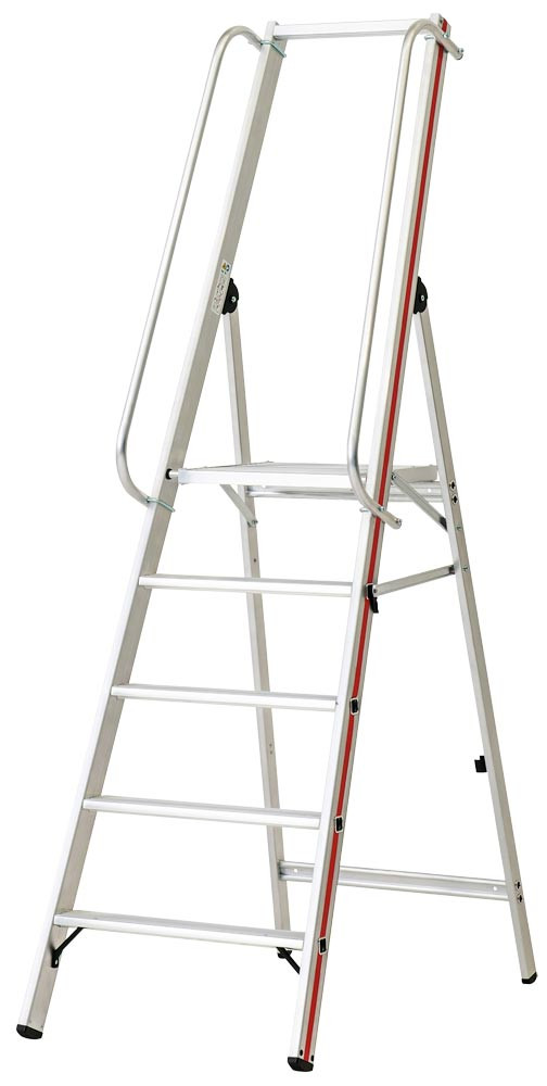 Plattformleiter mit Handlauf, klappbar, Podesthöhe o. Geländer 1180 mm, 5 Stufen