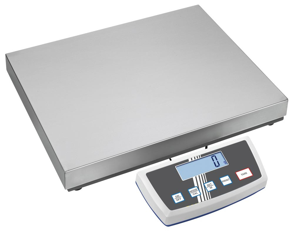 ∙ Nicht eichfähig ∙ Multimodell als Paket-, Zähl-, Rezeptur- und Kontrollwaage ∙ Edelstahl-Wägeplattform inklusive Anzeigegerät (B x T x H 225 x 110 x 45 mm, Kabellänge je nach Modell 1,05 bis 1,5 Meter) ∙ Großes, hinterleuchtetes LCD-Display (Ziffernhöhe 25 mm) ∙ 230 Volt Anschluss, Netzadapter serienmäßig ∙ Batteriebetrieb möglich (Batterien nicht im Lieferumfang enthalten) ∙ Akku und Kalibrierung optional auf Anfrage