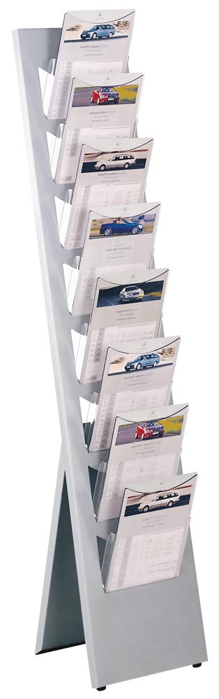 Prospektständer, für max. 8 Fächer DIN A4, BxTxH 320x420x1500 mm, geneigte Stahlkonstruktion, alusilber