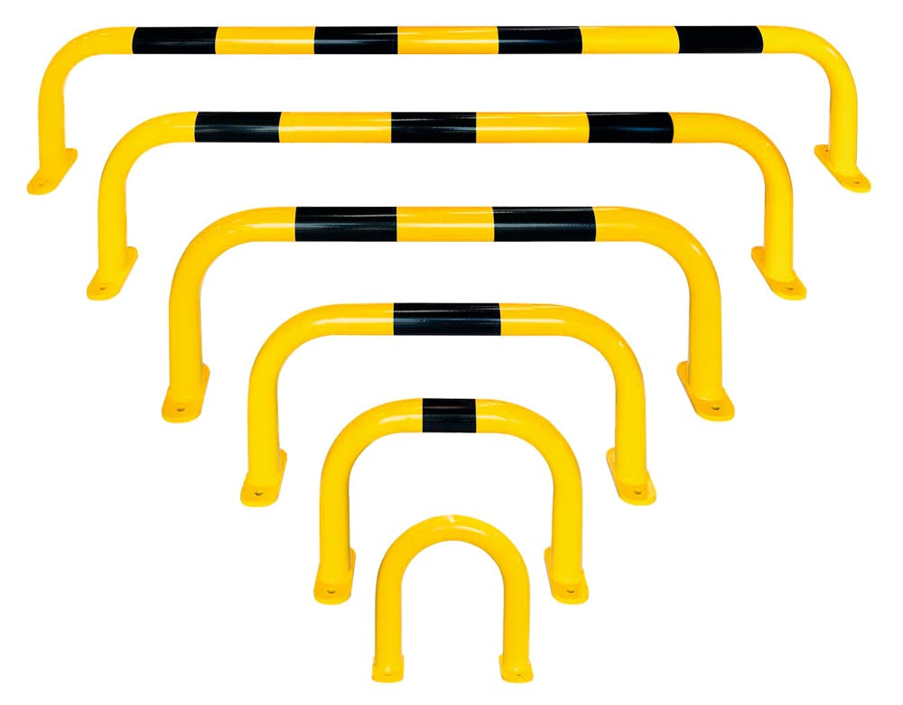 ∙ Rohrdurchmesser 60,0 mm ∙ Wandstärke 2 mm ∙ Hochbelastbare Schutzbügel aus Gütestahl ∙ Einfache Montage durch Aufdübeln (Montagematerial bitte separat mitbestellen) ∙ Gelb kunststoffbeschichtet mit schwarzen Signalstreifen · Weitere Ausführungen auf Anfrage