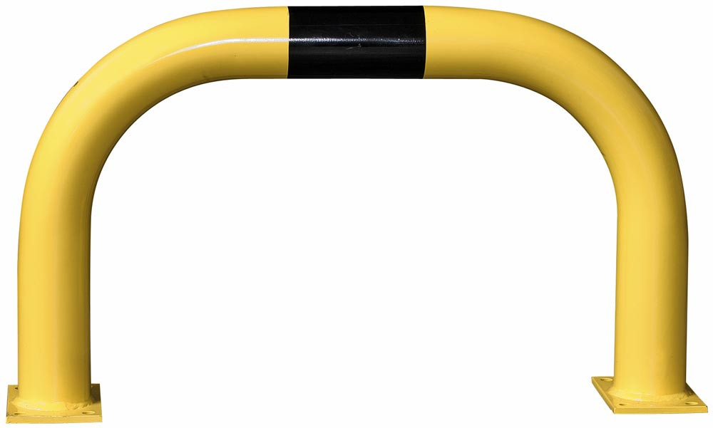 Rammschutz-Bügel XL, Rundrohr 108/3,6 mm, gebogen, BxH 1000x600 mm, Innenbereich, gelb beschichtet, mit schwarzen Streifen, zum Aufdübeln