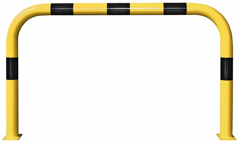 Rammschutz-Bügel XL, Rundrohr 108/3,6 mm, gebogen, BxH 2000x1200 mm, Innenbereich, gelb beschichtet, mit schwarzen Streifen, zum Aufdübeln