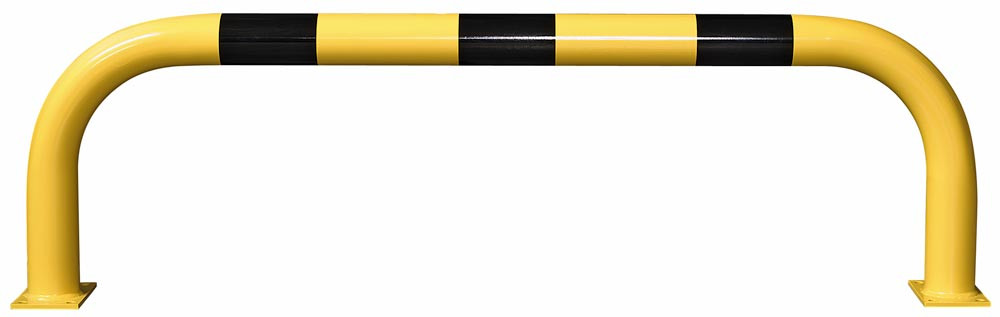 Rammschutz-Bügel XL, Rundrohr 108/3,6 mm, gebogen, BxH 2000x600 mm, Innenbereich, gelb beschichtet, mit schwarzen Streifen, zum Aufdübeln