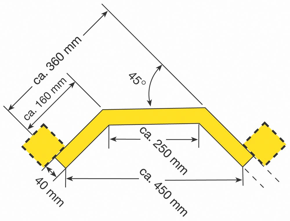 Rammschutz-Planke, Eckplanken-Innen-C-Profil, 100x40x3 mm, feuerverzinkt und gelb kunststoffbeschichtet, Außenbereich, Länge 556 mm