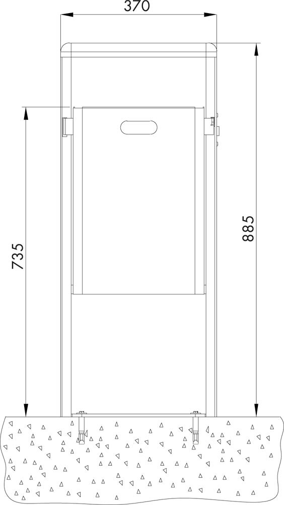 ∙ Stahlblech feuerverzinkt ∙ Eingrifföffnung zum besseren Handling ∙ Abgerundete Haube aus 3 mm Stahlblech ∙ Dreikantschloss geschützt im Ständer integriert ∙ Behälter zum Entleeren schwenk- und abnehmbar ∙ Mit gelochtem Boden für den Wasserablauf ∙ Behältervolumen 40 Liter