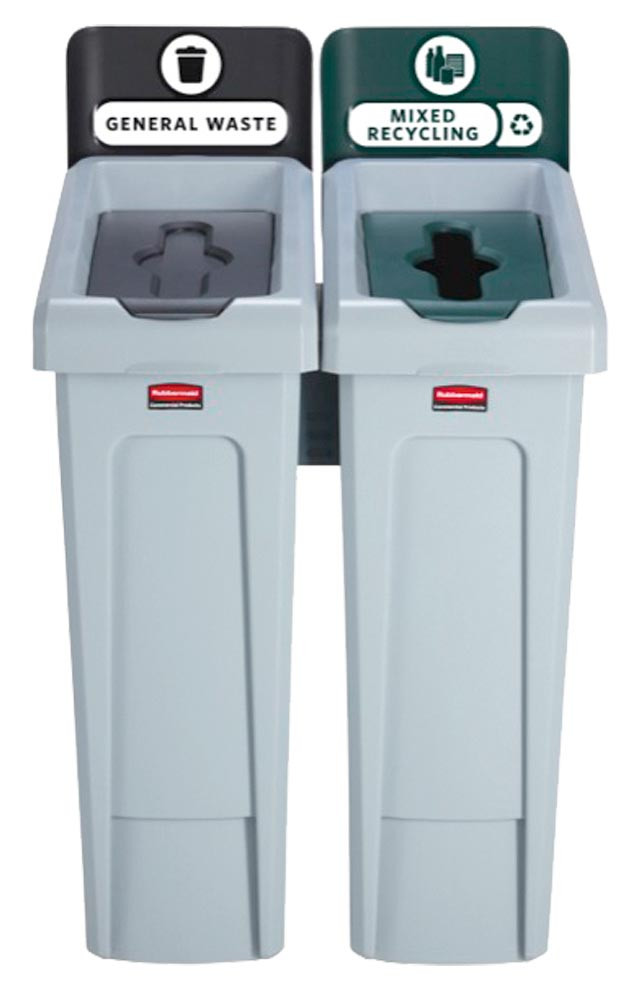 Recycling-Station, 2 Abfallarten: Restmüll/gemischtes Recycling, BxTxH 609,6x546,1x102,24 mm