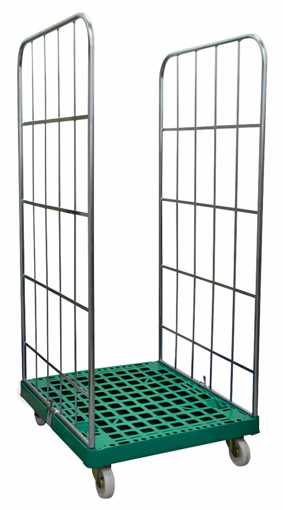 Rollbox, 2-seitig, Nutzhöhe 1650 mm, LxBxH 810x720x1850 mm, Bodenplatte aus HDPE, RAL 6024 verkehrsgrün