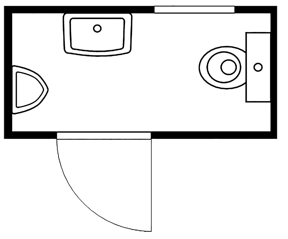 · 1 Handwaschbecken (Kaltwasser), 1 Tiefspül-WC mit Spülkasten, 1 Urinal, 1 WC-Papierhalter, 1 Kleiderhaken, 1 Spiegel, 1 Ablage, 1 Handtuchhaken