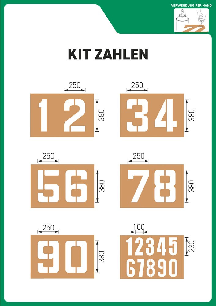 · 6-teiliges Ziffern-Schablonen-Set in unterschiedlichen Schrifthöhen
