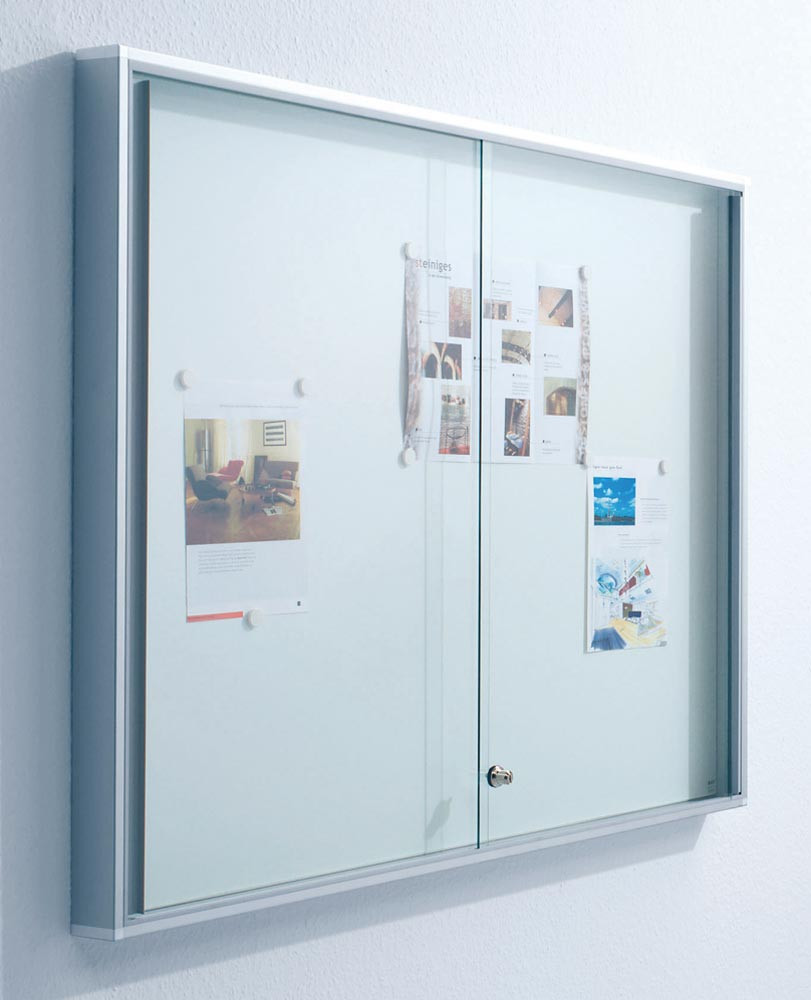 Schaukasten, BxTxH 1540x50x970 mm, 21xDIN A4, Alurahmen, Schiebetüren, ESG-Glas, Rückwand weiß E857458