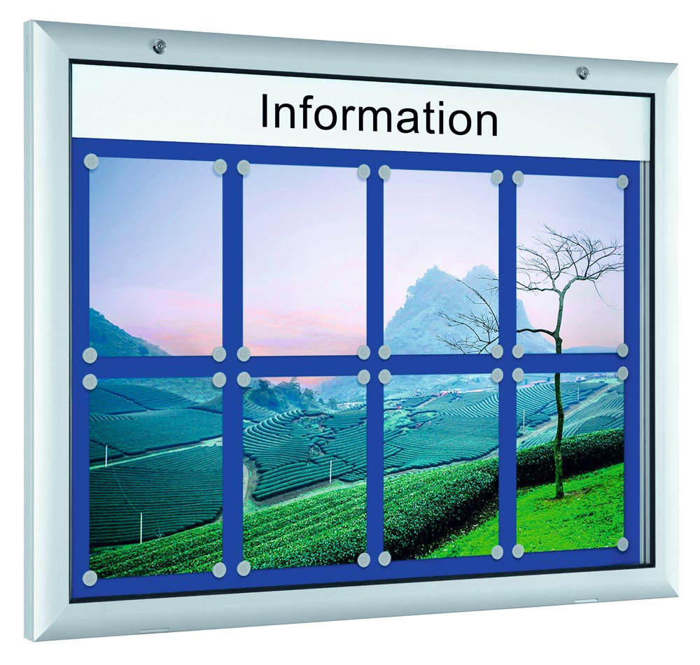 ∙ Formschöne Schaukästen die allen Anforderungen zum Informieren von Mitarbeitern, Kunden oder Mitbürgern entsprechen ∙ Wartungsfreie, korrosionsbeständige Aluminiumkonstruktion, silberfarbig eloxiert ∙ Flügeltür mit Einscheibensicherheitsglas (ESG) ∙ Abschließbar ∙ Regen- und staubdicht durch eckverschweißte Dichtungen ∙ Integriertes Belüftungs- und Entwässerungssystem ∙ Rückwand magnethaftend ∙ Entsprechend den Brandschutzbestimmungen B1 ∙ Für Wand- und Ständermontage ∙ Inkl. 10 Magnete grau und 1 Einstecktasche DIN A4 ∙ Lieferung ohne Schriftleiste oder Ständergarnitur (siehe Zubehör)