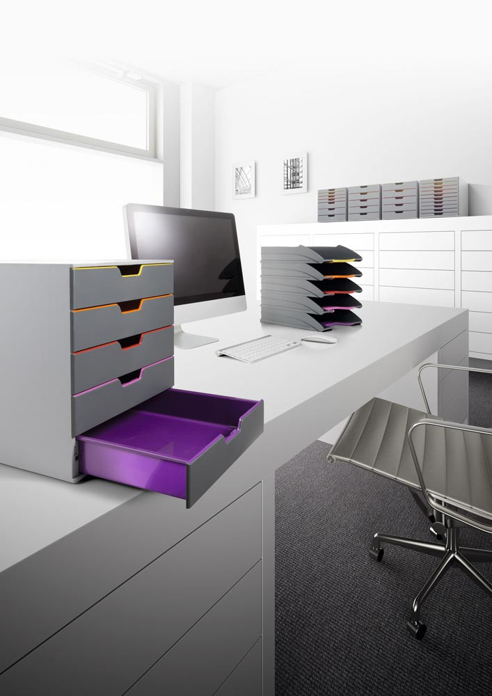 · Aus hochwertigem Kunststoff (ABS & PS) · Schubladen und Korpus in unterschiedlichen Farben · Für Formate DIN A4, C4 sowie Folio- und Letter-Size-Format · Geräuscharmer Schubladenleichtlauf mit Auszugssperre · Stapelbar · Rutschfeste Kunststofffüße · Inkl. transparenten Beschriftungsfenstern und computerbeschriftbaren, leicht auswechselbaren Einsteck-Etiketten