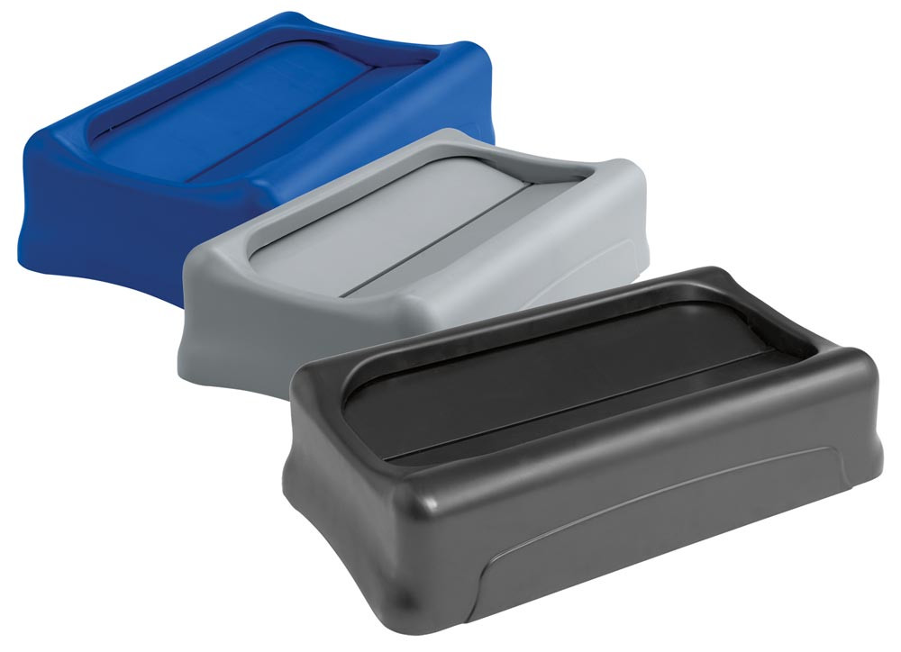 ∙ Hergestellt aus bruchfestem Kunststoff (Polyethylen, Schwingdeckel aus Polystyrol) ∙ Durch Farbcodierung erleichterte Abfalltrennung ∙ Verschiedene Farben und Ausführungen lieferbar