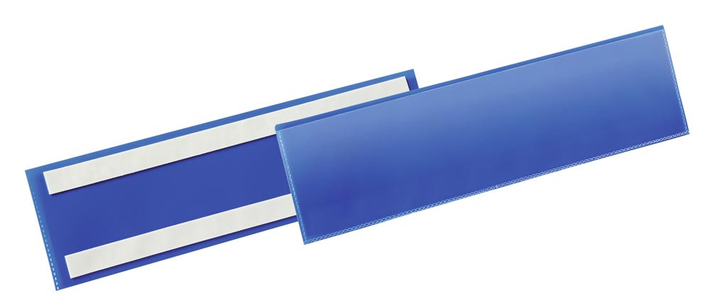 · Mit zwei rückseitigen Klebestreifen · Zur Anwendung an Oberflächen wie Holz, Kartons und Transportbehälter · Blaue Rückenfolie und transparente Vorderfolie aus strapazierfähigem Polypropylen · Scannertauglich und dokumentenecht · Schneller Austausch der Einsteckschilder · VE 50 Stück