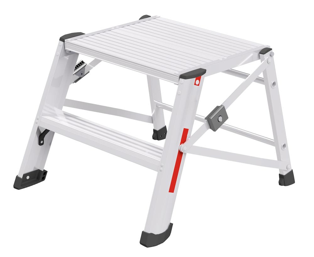 Service- und Montagetritt aus Aluminium, 2x2 Stufen, Standhöhe 460 mm, 80 mm tiefe Stufen, beidseitig E6501055