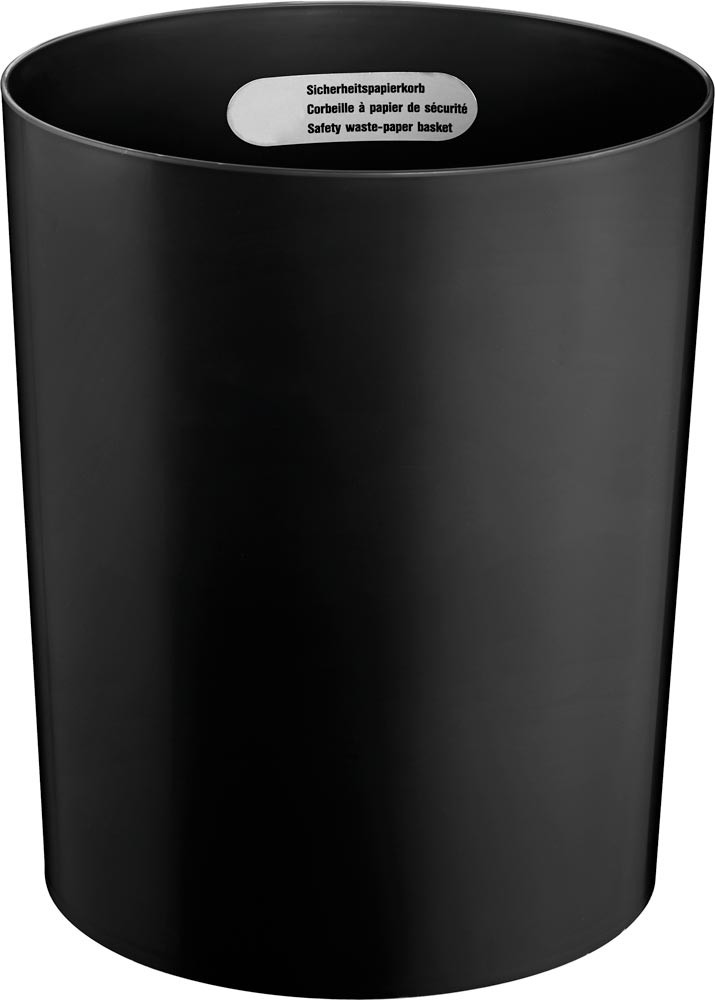 Sicherheits-Papierkorb, Kunststoff schwer entflammbar, Metallboden, Volumen 20 l, Durchm.xH 280x340 mm, schwarz, VE 3 Stück