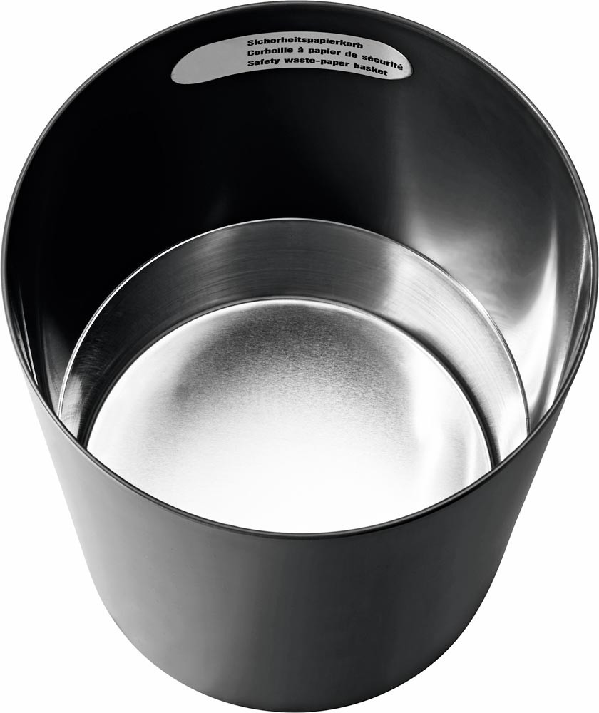 · Aus schwer entflammbarem Sicherheitskunststoff · Er verhindert, dass ein im Papierkorb entstandenes Feuer auf die Umgebung übergreift - die höchste Stufe der Sicherheit aus Kunststoff · TÜV-geprüft