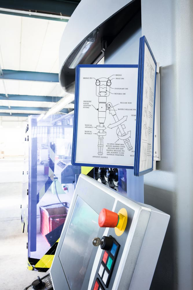 Komplett-Set · mit Profilrahmen · mit magnetischem Rücken · Metall-Wandhalter für die Befestigung an Maschinen · mit 5 Sichttafeln
